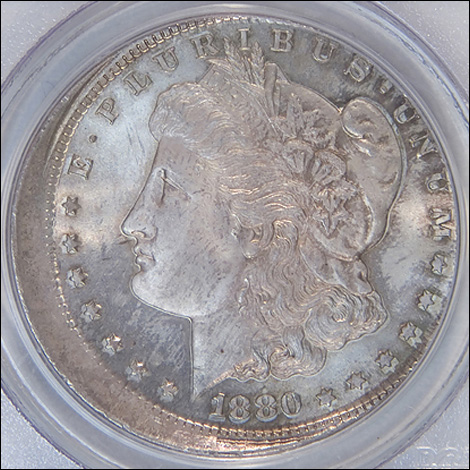 1880/9-S Morgan Dollar Struck 10% Off-Center PCGS MS 63