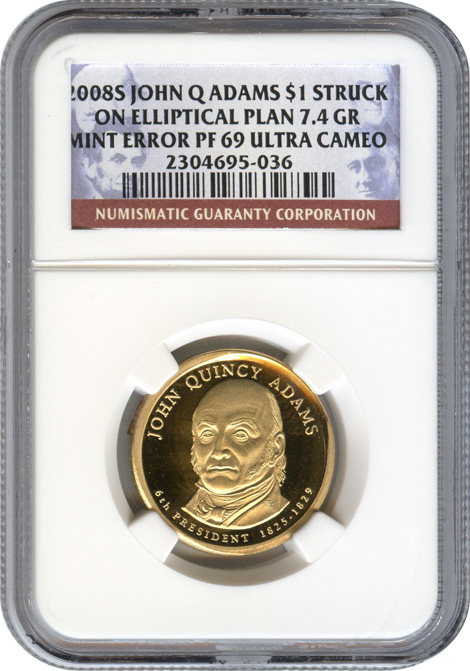 NGC Certifies Proof John Q. Adams $1 Struck On An Elliptical Planchet