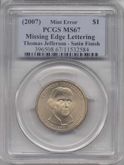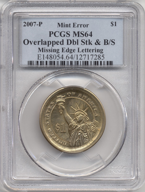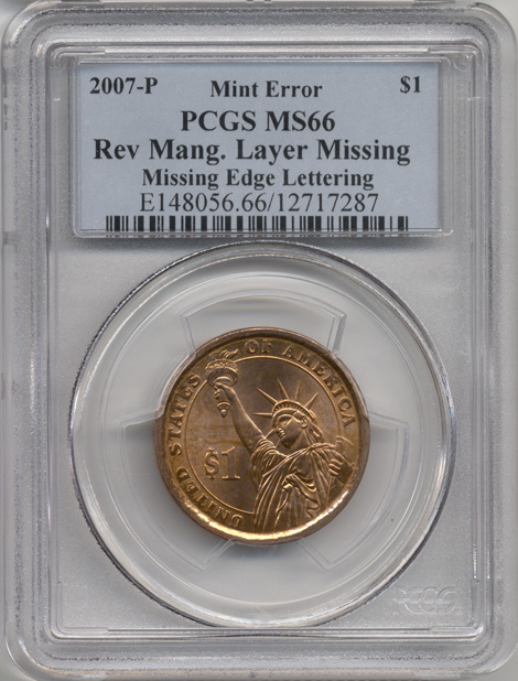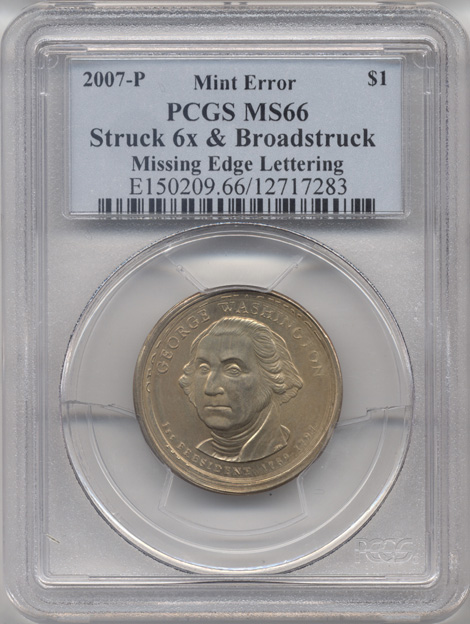 The Missing Edge Lettering discovery on the George Washington Presidential Dollar was the biggest news story of 2007. Mint Error News has published a special edition of the magazine showcasing the Washington Dollar Missing Edge Lettering mint errors which can be viewed on minterrornews.com. Presidential Dollars featuring John Adams, the second president, were also discovered with the Missing Edge Lettering.