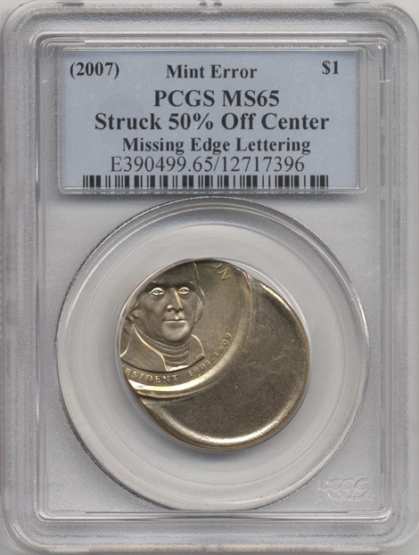 Thomas Jefferson Dollar Struck 50% Off-Center