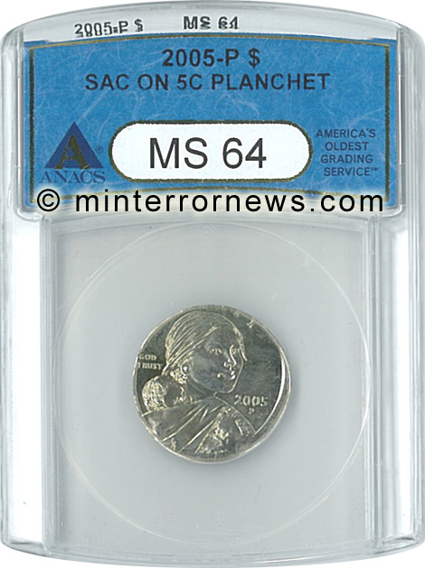 ANACS Certifies Sacagawea Dollar Struck on a Nickel Planchet