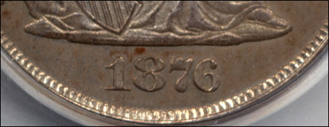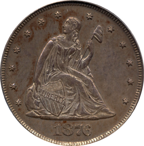 To top it off, this 20¢ piece is a better date (1876 with a mintage of only 15,900). It is also in choice mint state condition with medium original toning.