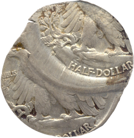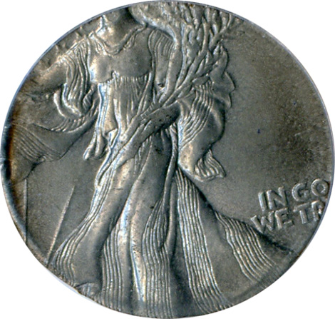 The following two Walking Liberty Half Dollar errors were featured in previous issues of Mint Error News Magazine but since they are unique just like the Walking Liberty Half Dollar struck on a Dime, we wanted to show them again.