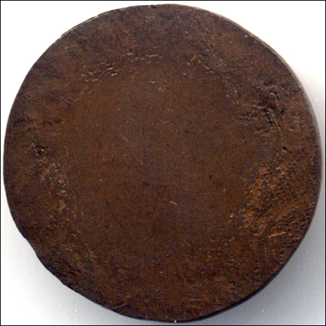 Of particular interest, a comparison of this hub trial with the final aluminum pattern shows that Longacre changed elements of the headdress and ribbon prior to producing the pattern. On the headress he rotated the lower 3 stars so that on the pattern a point of each star aims towards the central part of Liberty’s face (they don’t do this on the hub trial). On the ribbon the finished pattern has the words UNION & LIBERTY but the hub trial has only the word LIBERTY. This hub trial gives us a glimpse into Longacre’s creative process by illustrating a design that he made, and then personally changed before he arrived at his final product.