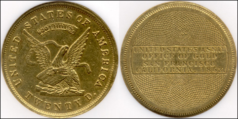 1853 U.S. Assay $20 Gold Piece Certified as Double Struck by NGC