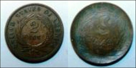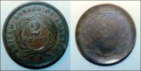 Spectacular 1864 2¢ Obverse Die Cap With 2 Obverse Brockages