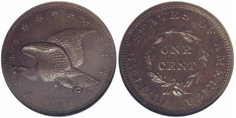 The following f lying eagle cent pattern shows slight double striking on the reverse most noticeable in the lower denticle area.