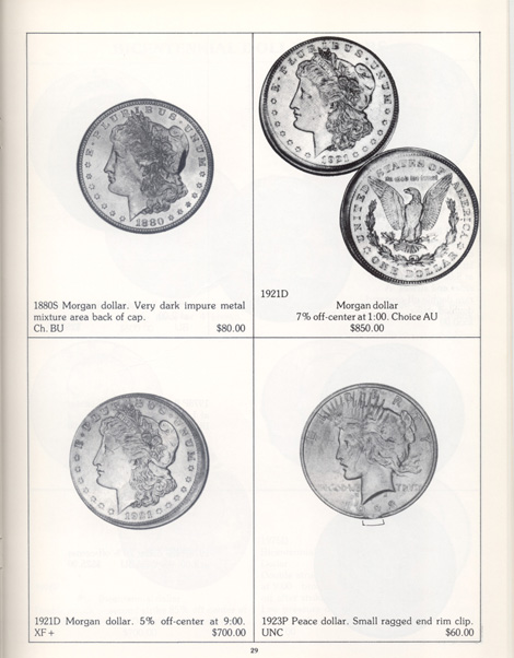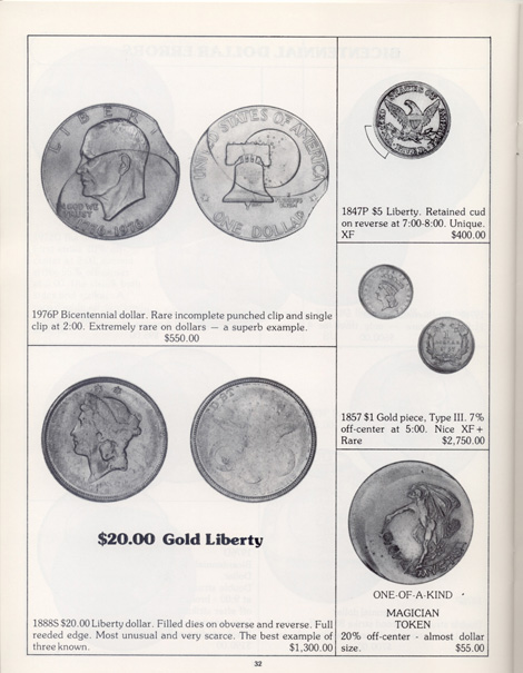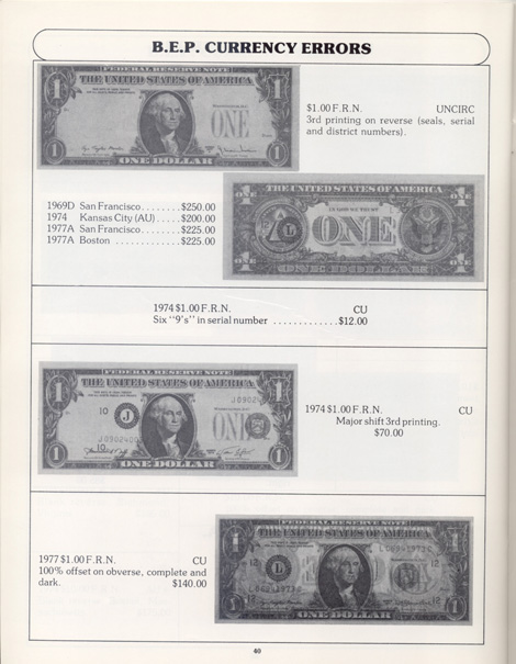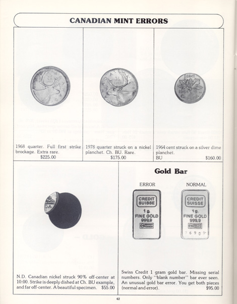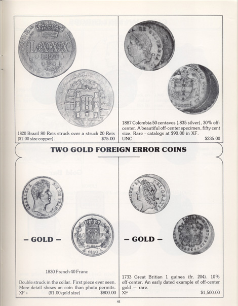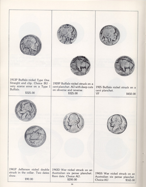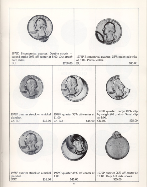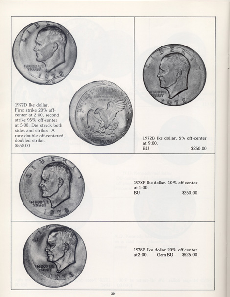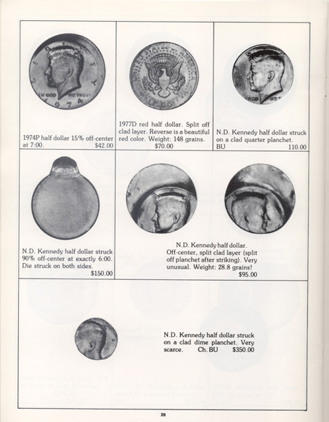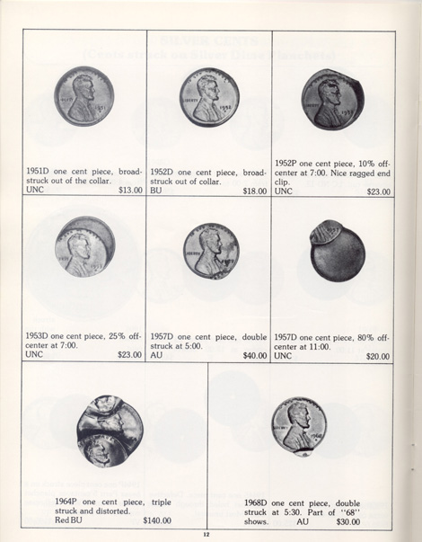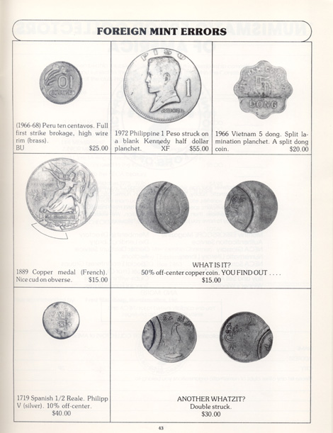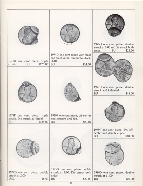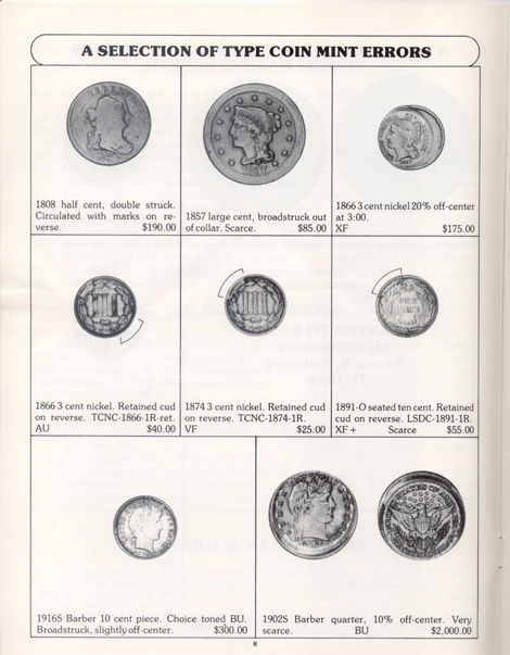 Here is another in a series of Mint Error Catalogs from Fred Weinberg when he was with Numismatics, Ltd. It is always exciting to compare current mint error prices with those from decades ago. Mint Error News Magazine thanks Fred Weinberg for sharing these with our readers.