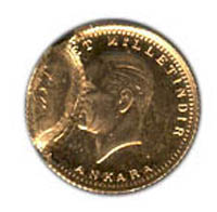 2005 Gold Turkey 25 Kourush with a strong indent from planchet