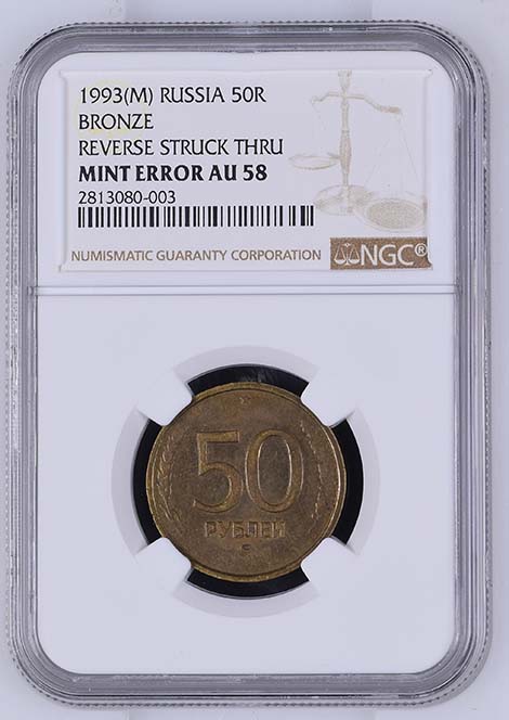 1993(M) RUSSIA 50R BRONZE REVERSE STRUCK THRU
