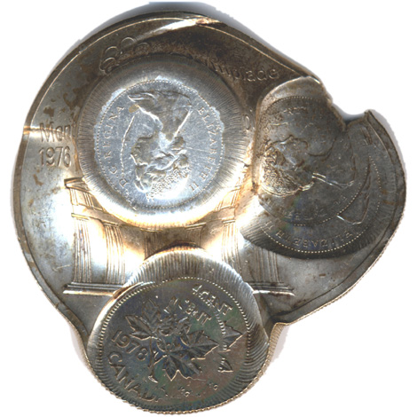 This is an incredible and unique Canadian mint error. 1978 Cent Dies were struck multiple times over an Olympic 1976 Commemorative $10 that was dated 1974. Although many dramatic and unusual Canadian errors surfaced during the 1970’s, this is the most dramatic and spectacular piece that I have ever seen.