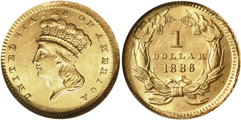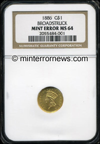 In searching our archives for broadstruck gold coins, the only listing we could find was for a 1906-D Double Eagle sold back in 2003. Needless to say, such errors are highly unusual for anything struck in gold. What makes this spectacular offering even more intriguing is that only 5,000 business strikes were produced in 1886, so the odds of an error slipping through are only more miniscule. This out-of-collar striking is shifted toward 8 o’clock and displays vibrant luster.