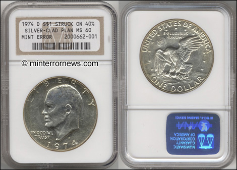 1974-D Ike Dollar Struck on 40% Silver-Clad Planchet