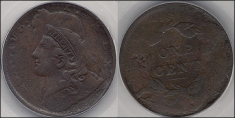 This is one of two known Large Cents overstruck on coins from other countries. This is a very dramatic double denomination Large Cent. Somehow a 1731 George II Halfpenny which may have been circulating in the United States was erroneously mixed in a batch of planchets intended for large cents. There is a tremendous amount of detail visible from the Halfpenny. Both portraits are visible and line up together as well. A fantastic major mint error and a discovery coin.
