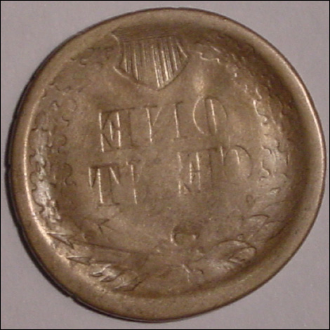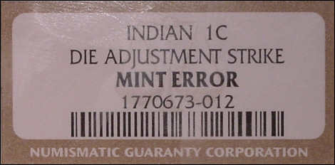 The second is a die adjustment strike for an Indian Head Cent. Die trials are rare on early U.S. type coins. This mint error is in choice mint state condition with considerable luster and is attractively toned.