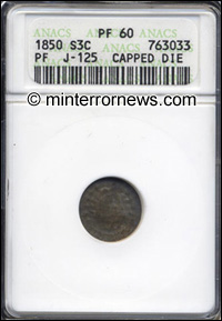 It is a proof striking on a Silver planchet. It is Judd #125 Original, Pollock #147 Rarity-4. ANACS authenticated and certified this mint error as a Capped Die and graded it Proof 60.