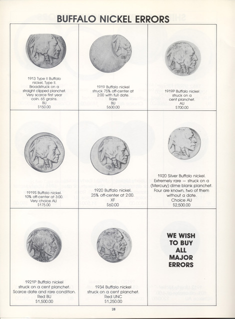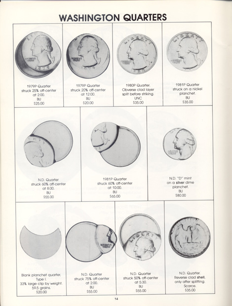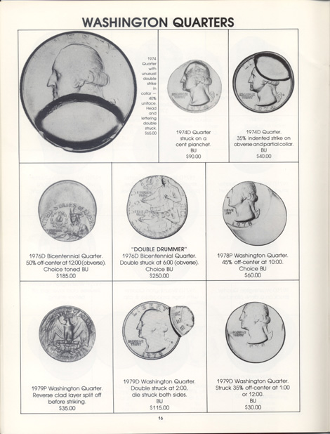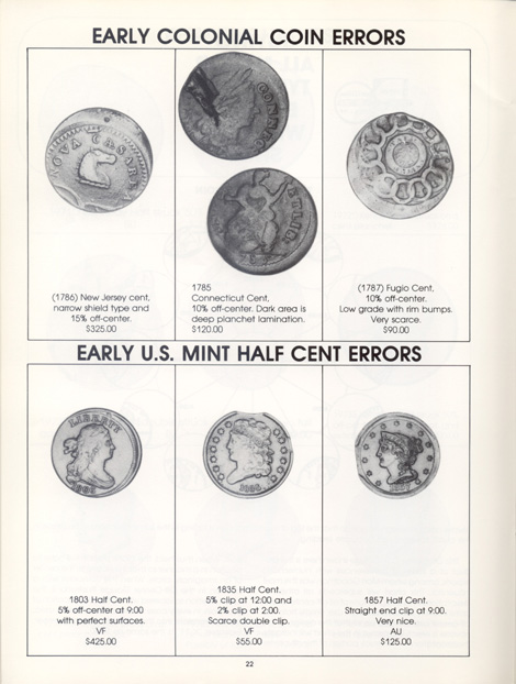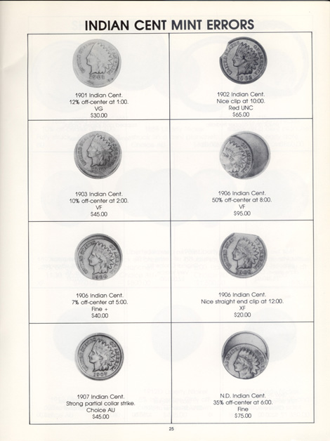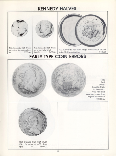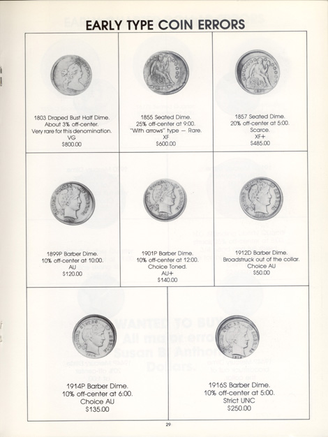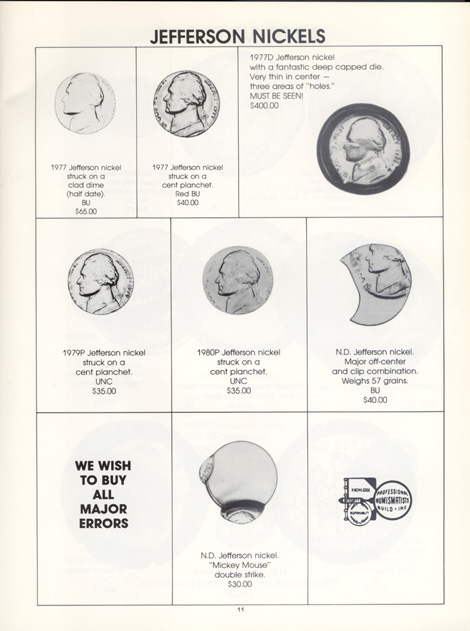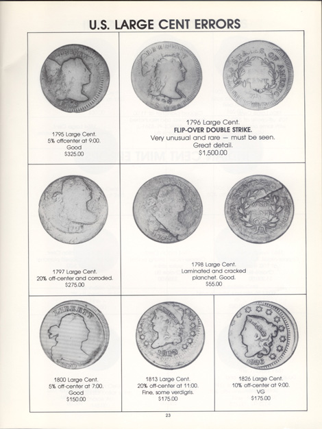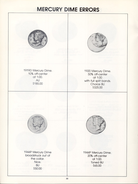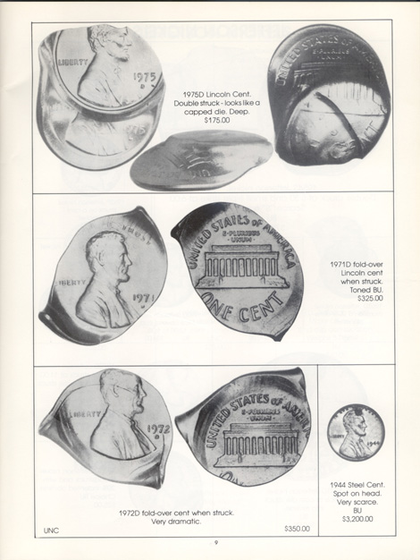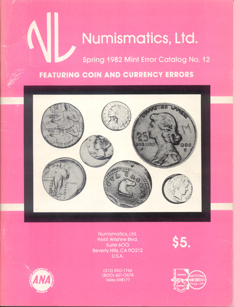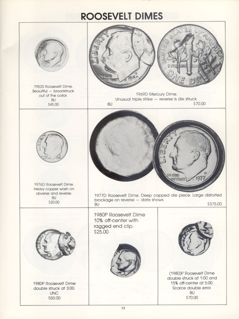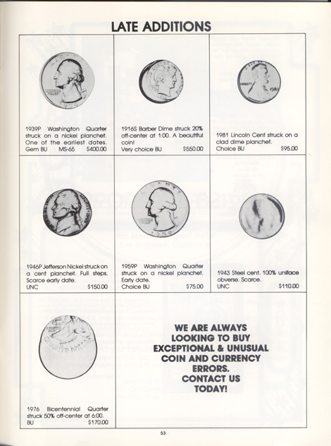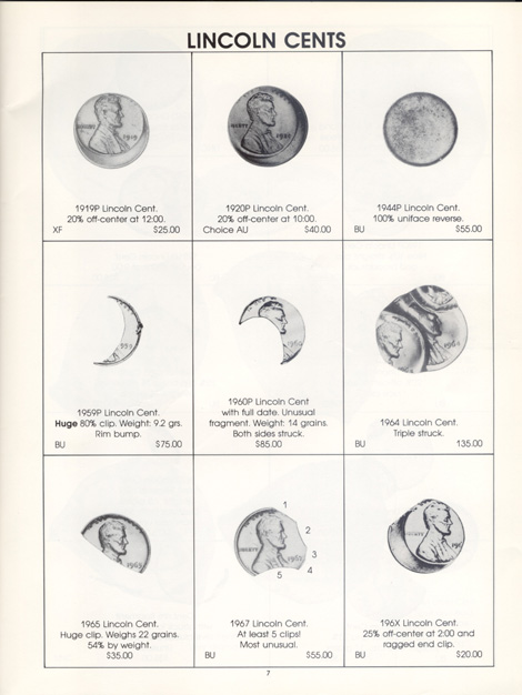 Here is another in a series of Mint Error Catalogs from Fred Weinberg when he was with Numismatics, Ltd. It is always exciting to compare current mint error prices with those from decades ago. Mint Error News Magazine thanks Fred Weinberg for sharing these with our readers.