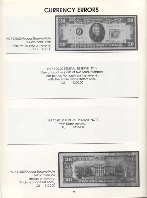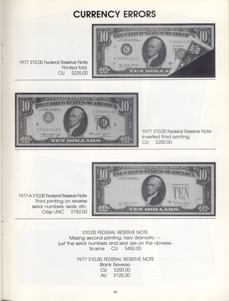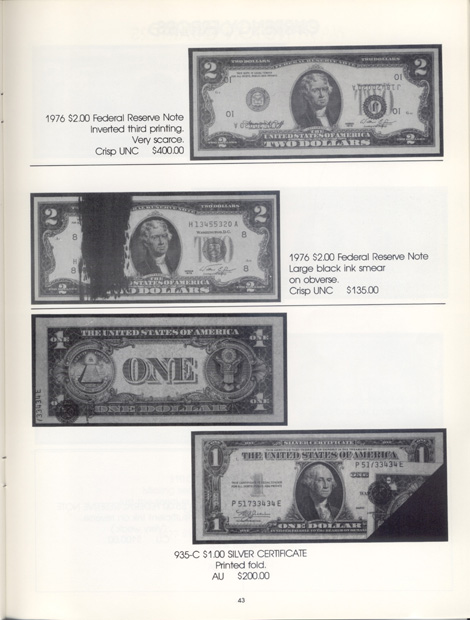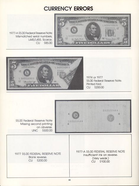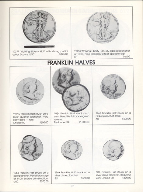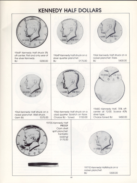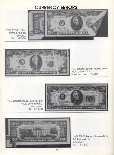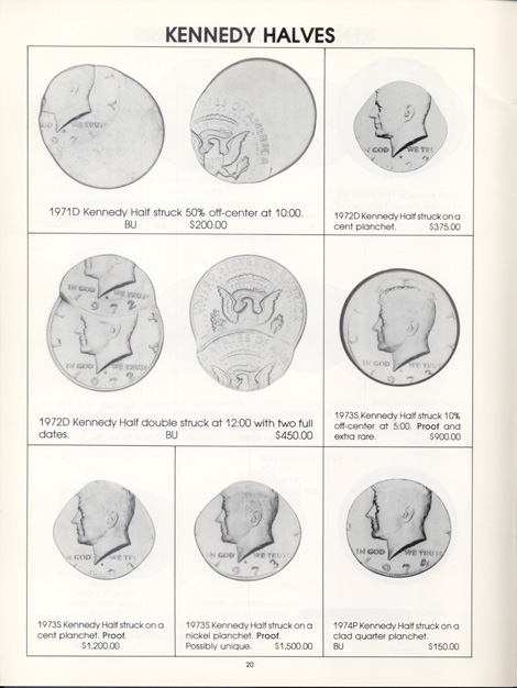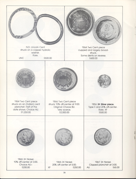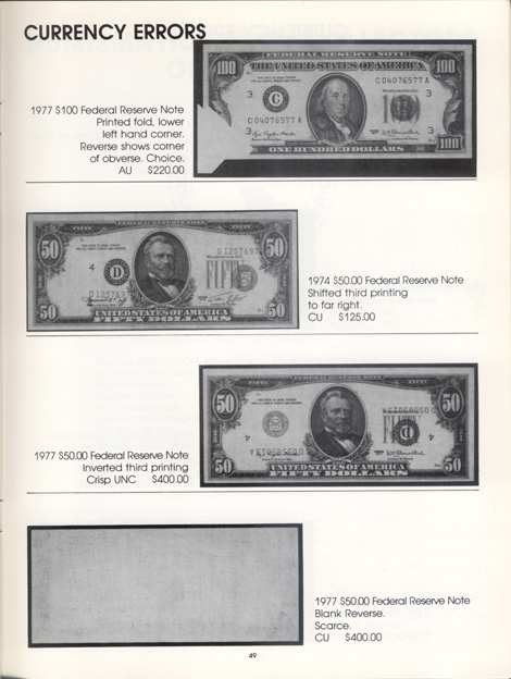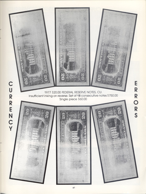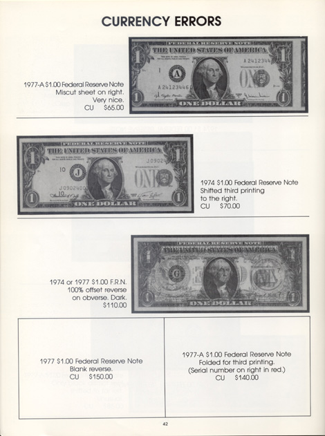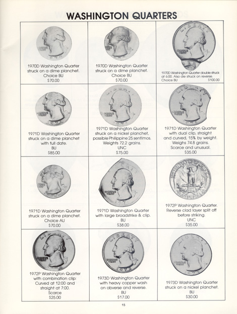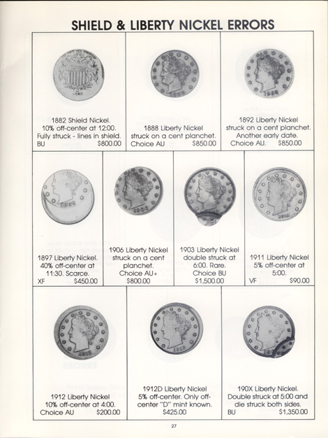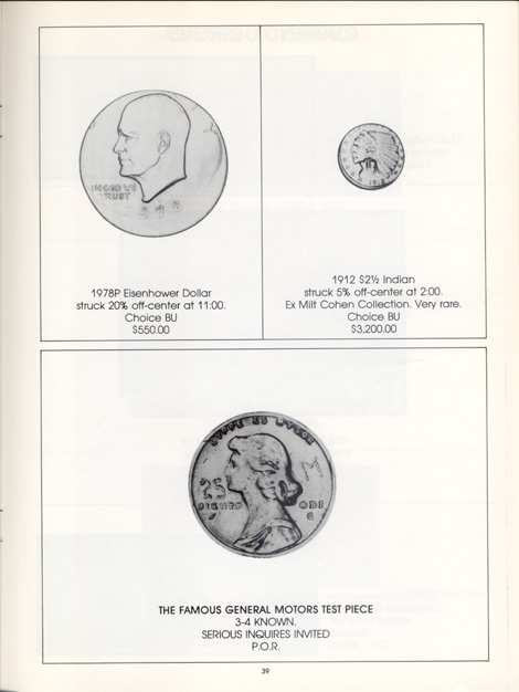 Here is another in a series of Mint Error Catalogs from Fred Weinberg when he was with Numismatics, Ltd. It is always exciting to compare current mint error prices with those from decades ago. Mint Error News Magazine thanks Fred Weinberg for sharing these with our readers.