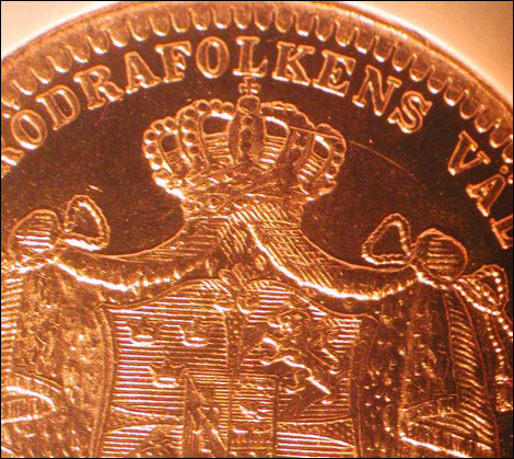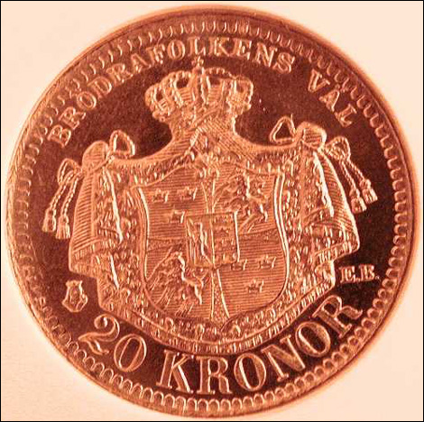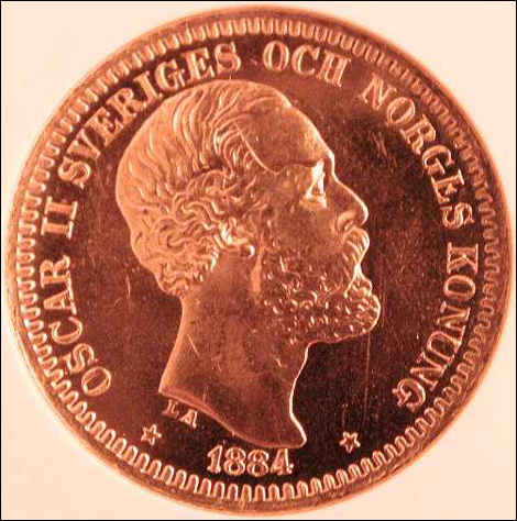 I thought that the readers of Mint Error News would like to see this coin. I have an 1884 20 Kroner gold coin that is double struck.