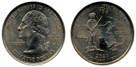 This is an exciting and fascinating new discovery. An unknown type of error until this discovery piece. It was first spotted in circulation by a woman sorting through her states quarters looking for errors. It has changed hands several times and finally found it's way to ANACS for certification. ANACS authenticated, certified, and graded it MS 64. It is a dual date (two different years, and also two different centuries, 2000/1999). It is also a dual state (Massachusetts and Georgia).